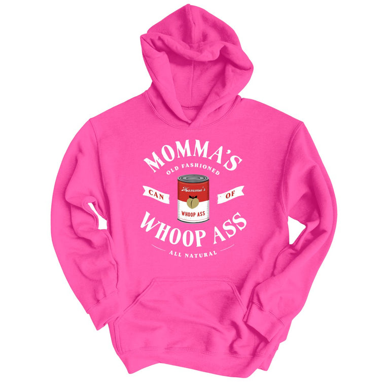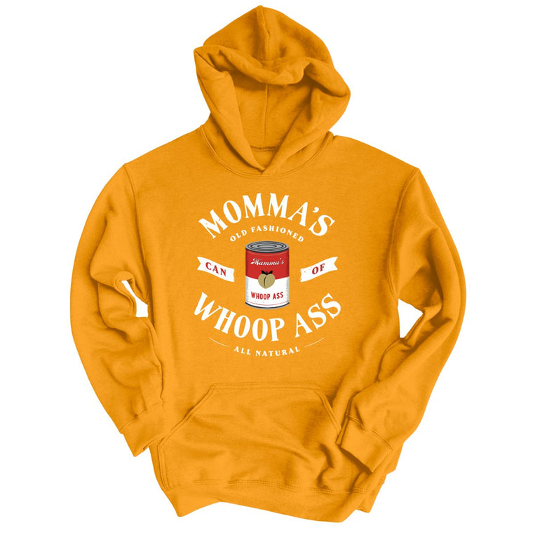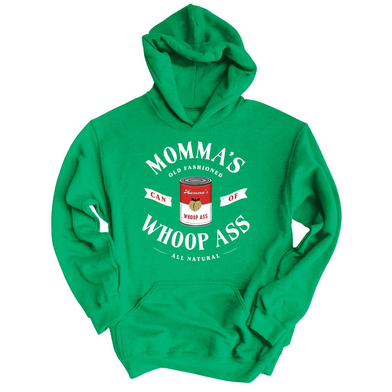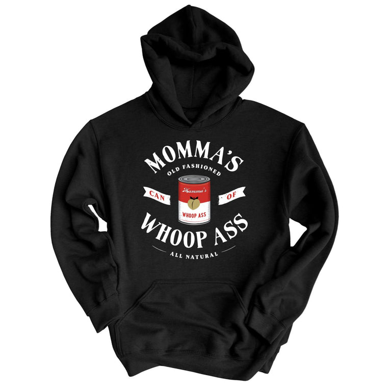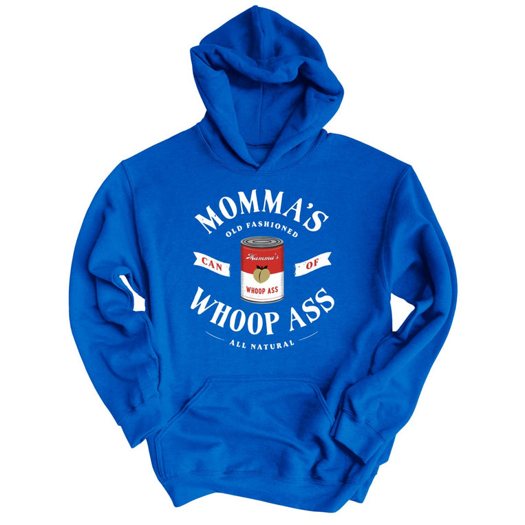 Momma's Can Of Whoop Ass. Our heavyweight hoodies are made of a warm & cozy 8.0oz 50/50 cotton/polyester blend fleece. They are true to size and super duper comfy.