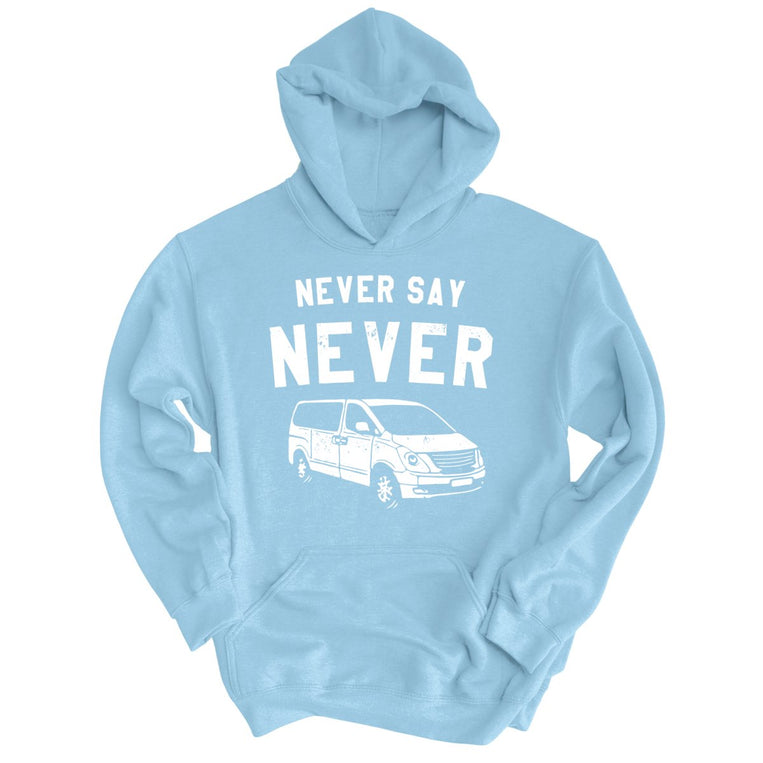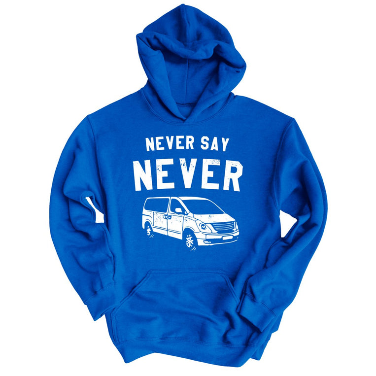 Never Say Never. Our heavyweight hoodies are made of a warm & cozy 8.0oz 50/50 cotton/polyester blend fleece. They are true to size and super duper comfy.