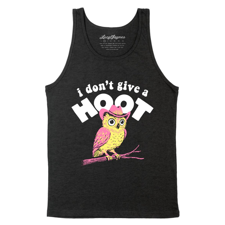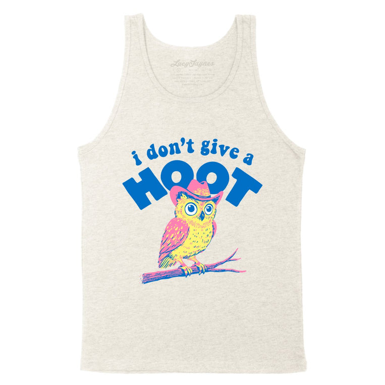 I Don't Give A Hoot. This must-have unisex jersey tank top is updated with a relaxed modern fit, featuring a rounded neck and designed with superior combed and ring-spun cotton